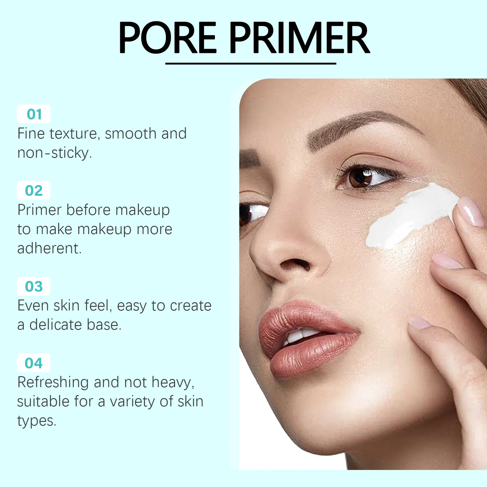 1. Minimize pores: Our hydrating primer is expertly formulated to effectively reduce the appearance of pores, giving your skin a smooth and flawless canvas for makeup application.