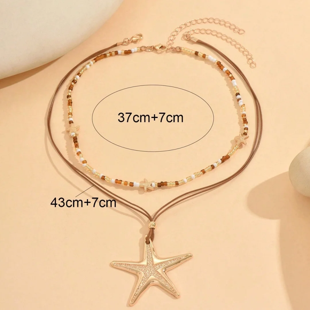 Retro White Starfish Pendant Collarbone Necklace Women's Simple Sweet Bead String Chain Girls Fashion Beach Jewelry